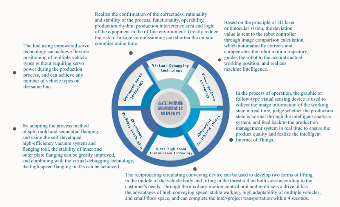 (1) When used with multi-axis servo body-in-white positioning technology, the workpiece realizes the "height 0 transport" (the body is highly consistent in operation and transport status) mode to improve stability and transport efficiency;